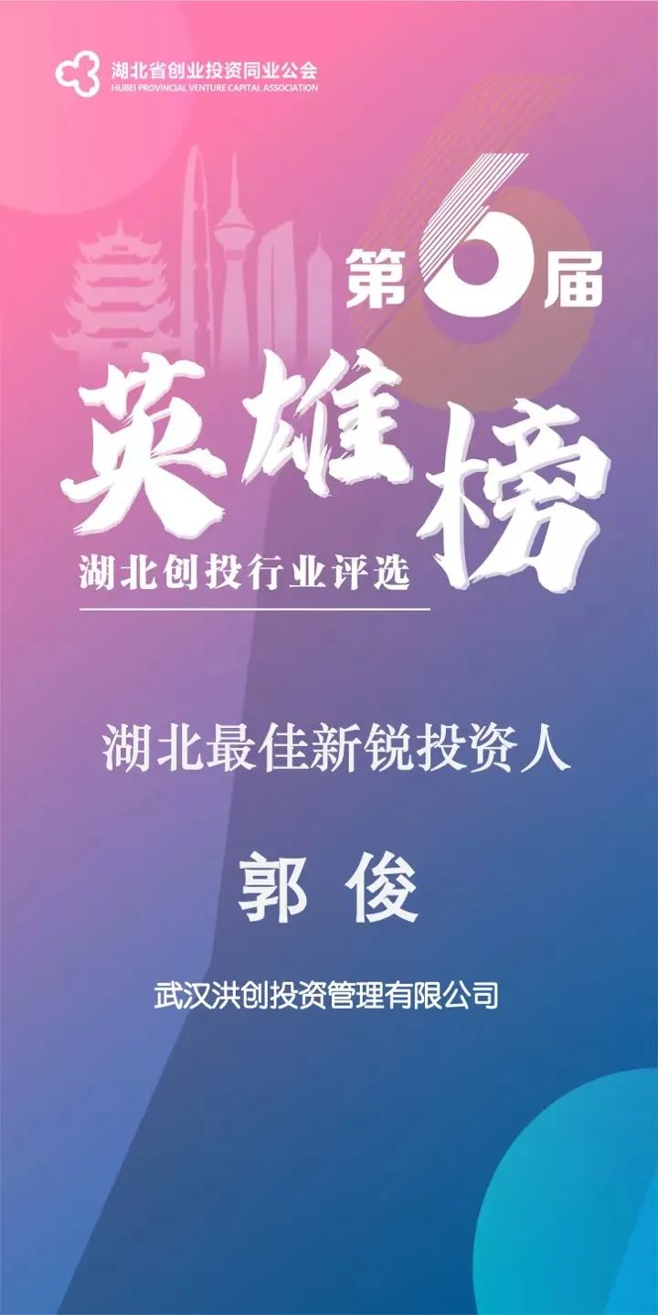 近日,“第六届湖北创投英雄榜”重磅揭晓,公司及管理团队共揽获本届英雄榜三大奖项:其中洪创投资荣获湖北优秀母基金管理机构、公司董事长喻峰荣获湖北最活跃创业投资人,公司总经理郭俊荣获湖北最佳新锐投资人。