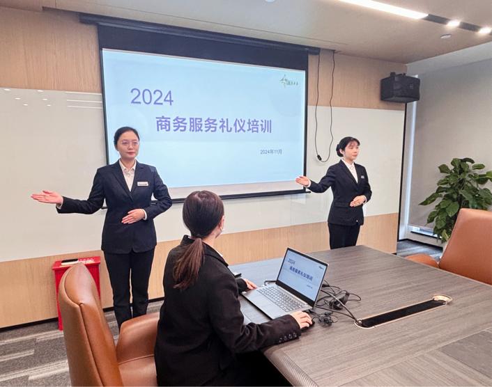 人无礼不立,事无礼不成。文明礼仪是我们对外树立企业形象的一张闪亮名片。为了进一步规范员工行为,掌握礼仪接待技巧,提升团队业务能力水平,同时加强集团内各业务板块间融合交流,科创公司于2024年11月22日下午举办“学礼仪、树形象、促提升”专题培训,武汉楚秀人力资源有限公司政务服务团队受邀主讲,科创公司全体员工和洪安物业客服人员参加了此次培训。